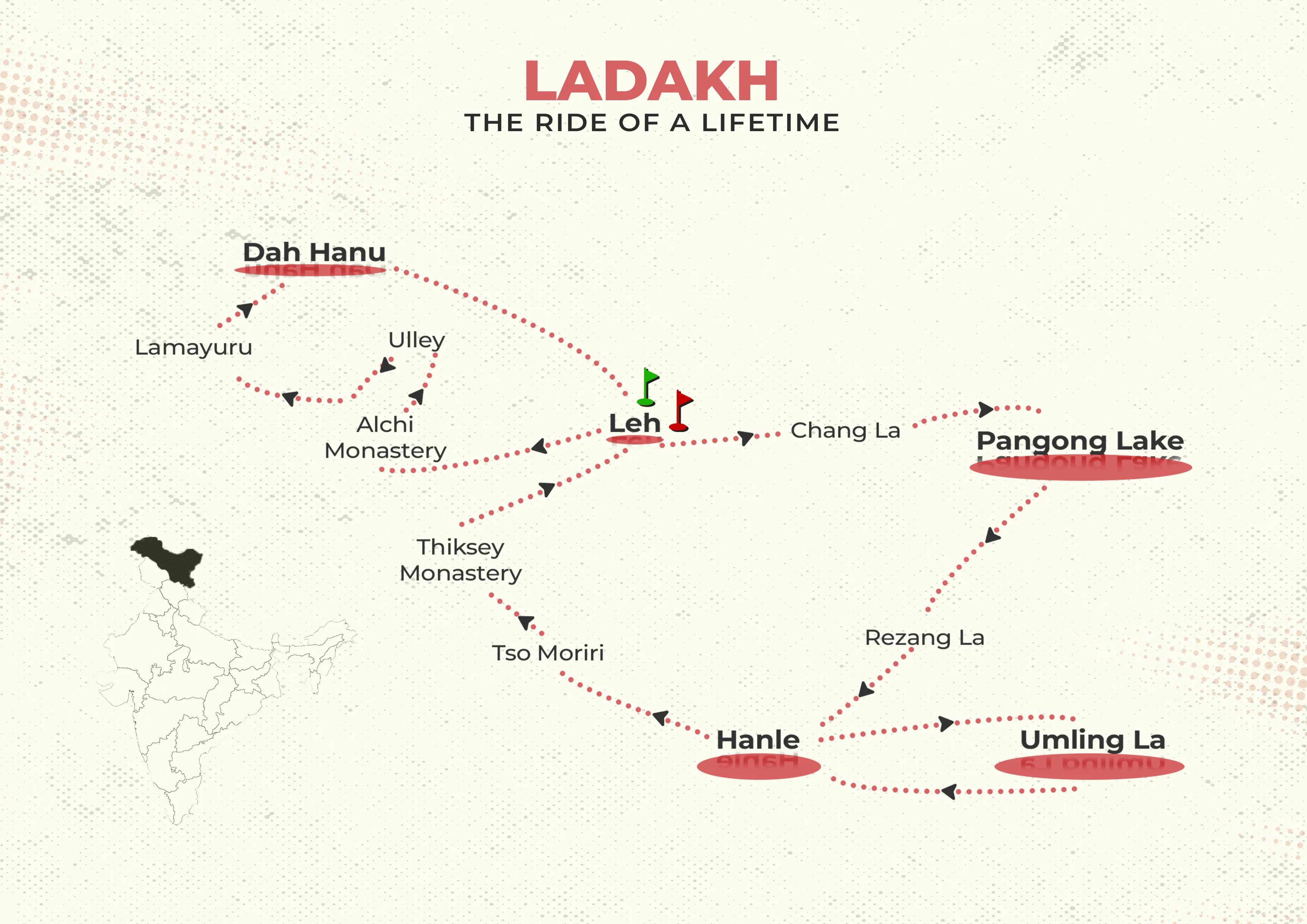 Our itineraries are thoughtfully designed from a rider’s perspective- ensuring the perfect blend of adventure, thrill, culture, off roading so that you can experience ladakh in its rawest form without exhausting yourself.