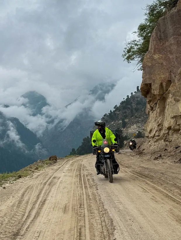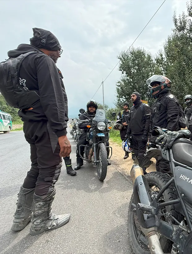 The morning in Manali feels different today. You wake up to the crisp Himalayan air, pack your saddle bags, and gear up for the first ride of the expedition. The excitement is real — today, your motorcycle finally hits the road.
