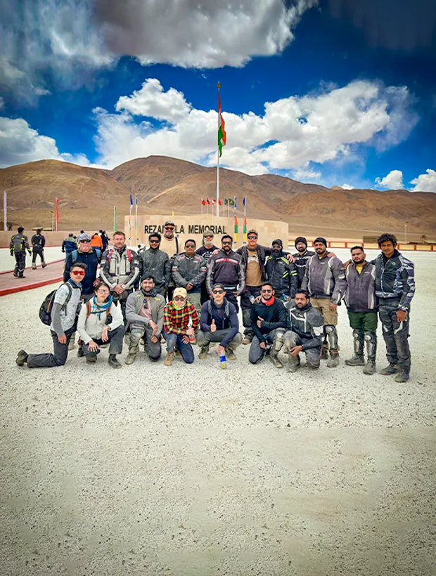 The road to Rezang La War Memorial is raw, remote, and humbling. When you arrive, the quiet stone memorial stands alone — a tribute to the 114 Indian soldiers who made the ultimate sacrifice during the 1962 war. The silence here feels heavier, deeper. You dismount, stand still, and let the weight of history settle in. This isn’t just a ride through landscape — it’s a passage through memory.