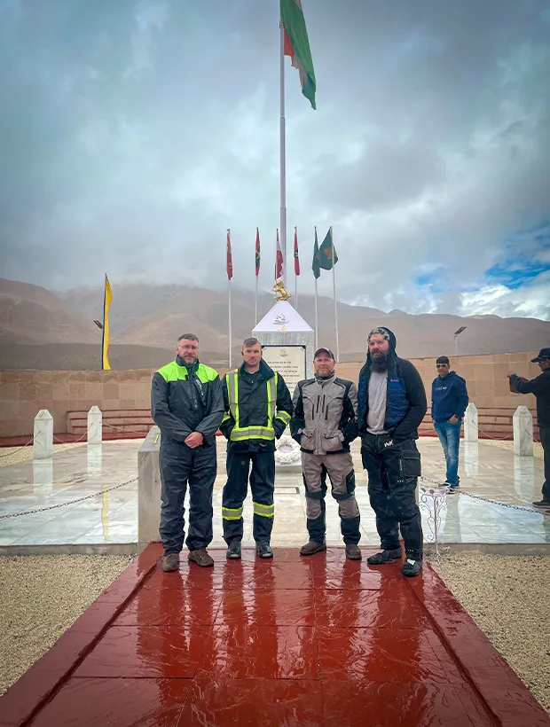 Beyond Zoji La, the ride shifts from untamed adventure to a moment of hushed admiration. The group halts at the Kargil War Memorial in Dras, where silence speaks louder than words. You walk beneath the sandstone arch, read the names etched in stone, and gaze up at the peaks once scarred by battle. There’s pride, there’s pain — and an unspoken connection to every soldier who once stood here. It’s a humbling moment that lingers longer than expected, even as the throttle calls you forward.